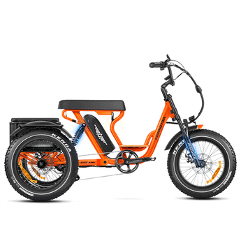 The AddMotor Soletri 2 Person Full Suspension Trike features a 750W rear drive motor that cranks out a continuous 750 watts of power with 80Nm Torque the ability to ratchet things up to over 1200 peak watts of power for inclines and quicker acceleration.
