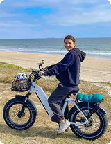 The bike’s fat tires provide grip and stability across dirt, gravel, or pavement. Hydraulic disc brakes ensure reliable stopping power, while the upright geometry makes it comfortable for longer rides. Riders can also switch between torque and cadence sensor modes, tailoring the ride to their preference.