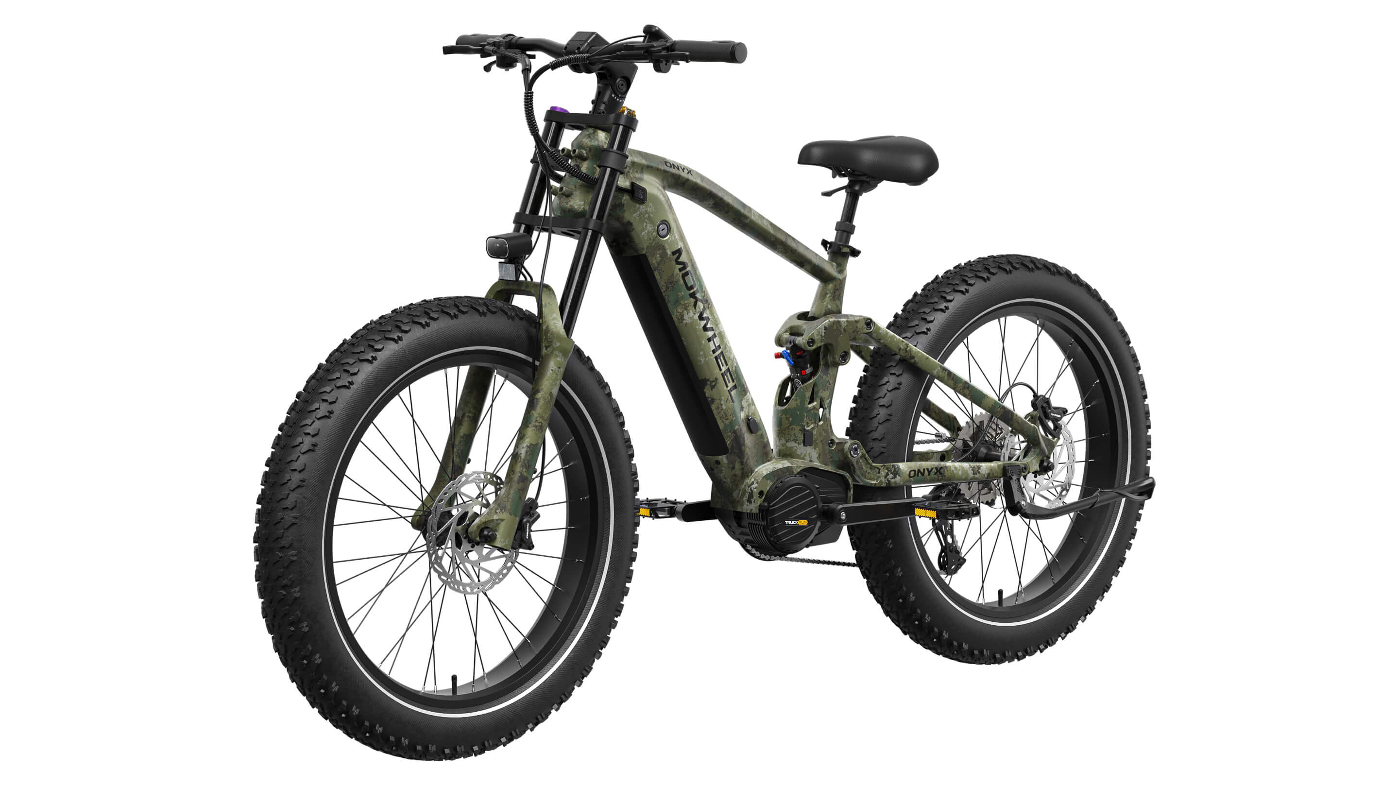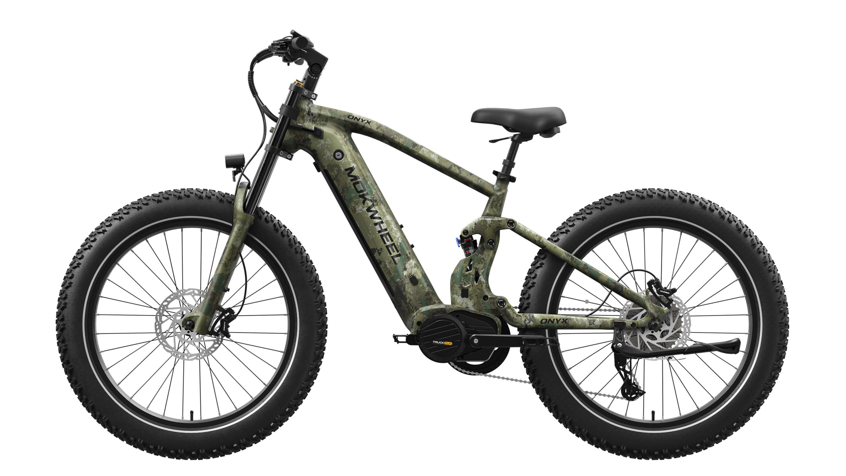 Mokwheel Onyx is the first Mid Drive Ebike offering a Power Inverter option. With the optional Inverter, you plug it into the Ebike's Inverter Port, thus using the Ebike Battery to produce 120V output and USB outputs on the Power Inverter. You can also use the optional Solar Charging Power Station thru the Inverter to charge the Ebike. This Ebike's features of convenience, firmness, large carrying capacity, and hydrauilc double crown front forks and rear suspension are what makes it the perfect choice for any enthusiast. It is capable of handling the difficult technical trails, while providing a smoother ride with better traction and handling, leaving the rider less fatigued.