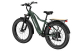 - 26” fat tires + suspension fork for all‑terrain stability